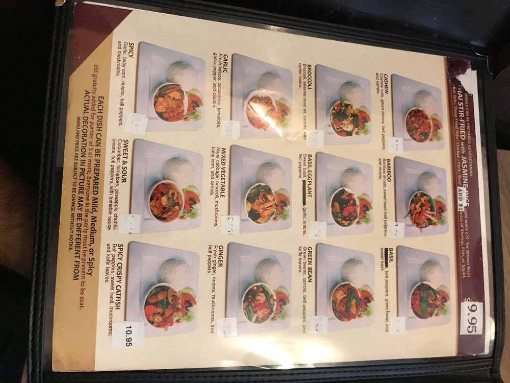 Stir-fried with basil, green beans, mushrooms, onions, sweet bell peppers, and zucchini and served on a sizzling hot plate.